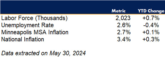 The Minneapolis MSA had a lower inflation rate and an overall slower increase in the Consumer Price Index than the national average.