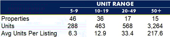 There are 114 listed multifamily properties on the market for a total of 4,583 units.