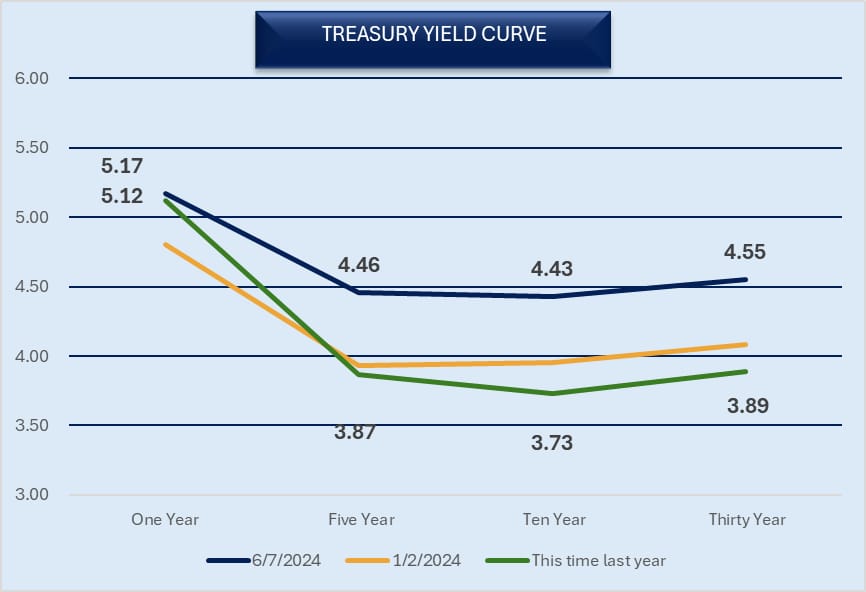 While treasury rates have increased at all levels, the short end of the curve is moving up at a slower rate than the longer end of the curve.