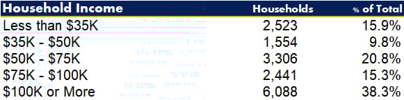 The average household income is estimated to be over $101K per year with a disposable income of $76K.