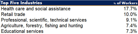 While unemployment is at 4.6%, slightly above the national average of 4.0%, this community has healthy employment in the healthcare, retail, and professional services industries.